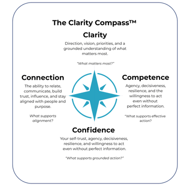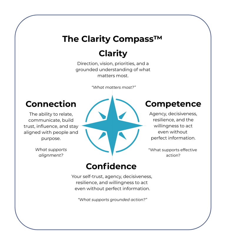 That doesn’t mean something is wrong. It means clarity needs to be revisited, not forced. This is where many people get stuck, not because they lack discipline or motivation, but because they keep trying to operate on outdated clarity. This is why the Clarity Compass exists. To help make sense of what has changed in your business, or to create clarity if you’re starting one.